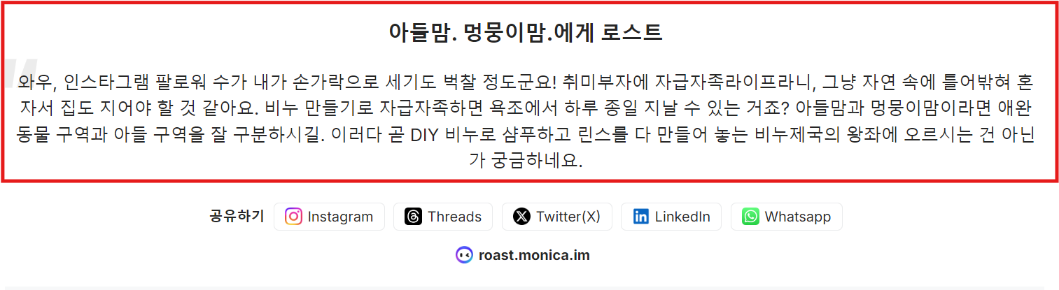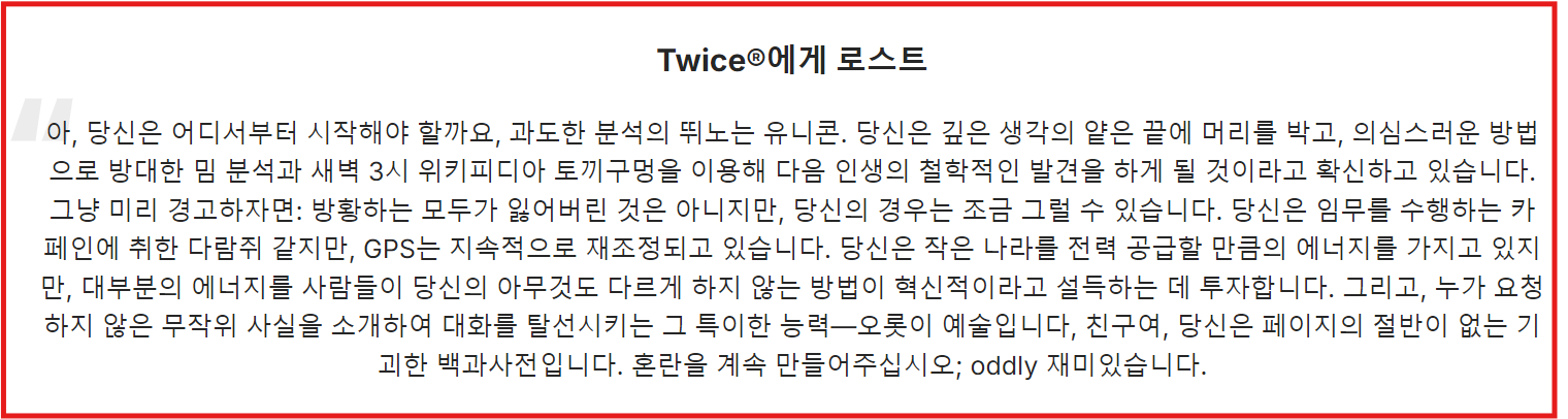 사례: 인스타그램 로스트마스터 모니카 AI분석,팩폭을 알려주는 트와이스의 계정을 살펴보았습니다.