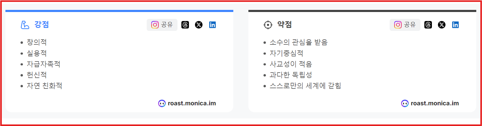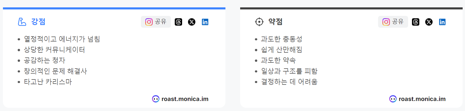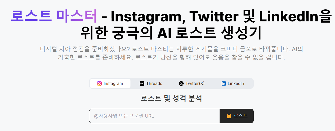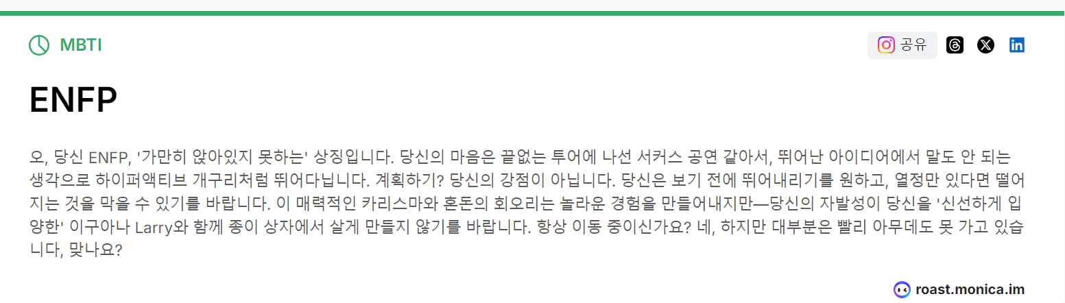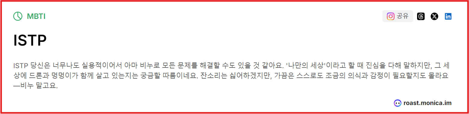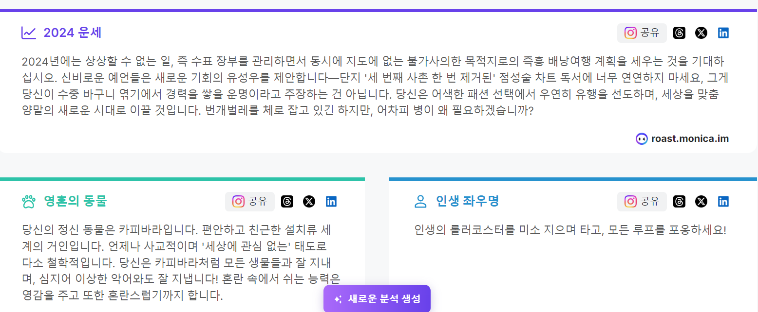 ▶인스타그램 로스트마스터 모니카 AI분석,팩폭인 MBTI의 결과와 운세을 알려줍니다.