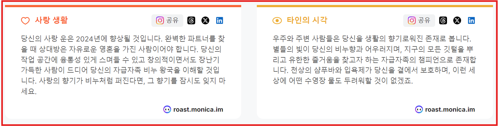 ▶인스타그램 로스트마스터 모니카 AI분석,팩폭으로서 사랑생활과 타인의시각은어떤지를살펴줍니다.